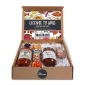 Sauce barbecue originale Stubb's en bouteille de 18 oz. Sauce Bone Suckin'. Sel rose de l'Himalaya D&A Spice Mills de 3,17 oz. Amandes barbecue habanero Blue Diamond en sachet de 1,5 oz. 12,125" L x 9,25" l x 4" H