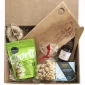 Cet ensemble-cadeau comprend une planche de service en érable canadien de 12" x 6,5" - BMP1206 avec un logo gravé, 140g de sablés au chocolat au lait artisanaux de Cookie It Up, 100g de maïs soufflé à la crème d'érable artisanal, 125g de gelée de poivron rouge (ou gelée de bleuet et lavande) de Provisions Food Company, 125g de fromage Castello ou d'une marque similaire, un étaleur/couteau à fromage en bambou GRATUIT, deux dessous de verre en bois rustique avec logo gravé - KW526, emballé dans une boîte-cadeau kraft avec autocollant en couleur, 2 frais de configuration requis. 14" L x 12" W x 4" H