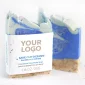 Célébrez nos océans avec une barre de savon artisanal aux couches rappelant le rivage. 10% des ventes de ce produit sont reversées à Oceana, une organisation internationale de défense de l'océan. Fabriqué avec des ingrédients simples dont du beurre de karité et de l'huile de noix de coco, ce savon est sans parfum et doux pour la peau, et sa base contient des grains de café pour une exfoliation douce. Chaque barre est enveloppée dans du papier ensemencé fait main. Il suffit de soumettre un logo ou un message pour l'avant de l'étiquette biodégradable. Conforme à la CFIA, USDA. 2,75" H x 0,5" L x 2" l.