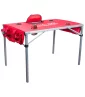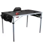 Conception compacte et pliable, table à cadre en aluminium avec glacière isolée intégrée. Compartiment de glacière zippé. 3 poches de chaque côté pour un espace de rangement supplémentaire. Tissu en polyester 600D avec étui de transport/bandoulière assorti. Conforme à la proposition 65. 41,5" L x 26,5" l x 28" H
