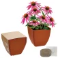 Chaque pot est fabriqué en fibre de bambou. Le prix comprend une impression d'une couleur/position sur le pot, une impression en couleur sur le dessus de l'emballage, 3 pastilles de fibre de noix de coco et une graine de votre choix. 3 1/2" L x 3 1/2" H x 3 1/2" P
