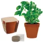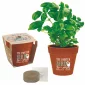 Chaque pot est fabriqué à partir de fibres de bambou. Le prix comprend une impression d'une couleur/emplacement sur le pot, une impression en couleur sur le dessus de l'emballage, 2 pastilles de fibre de noix de coco et une graine de votre choix. 3 1/16" de diamètre x 2 7/8" de hauteur.