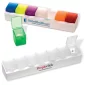 Cet étui à pilules en plastique PP comporte 7 compartiments individuels amovibles pour chaque jour de la semaine. L'étui est moulé avec les jours de la semaine. Conforme à la proposition 65. 7,5" L x 1,5" H x 1,25" P