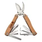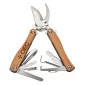Instruments en acier inoxydable avec poignées en bois, fermés de 4 pouces. Comprend des cisailles de jardinage, un tournevis plat, une lime, un couteau, une pelle à graines, une scie, ainsi que trois outils pour enlever les mauvaises herbes et les racines. Livré avec une pochette en nylon. Gravure laser. En boîte. Conforme à la proposition 65. 3 1/2" L.