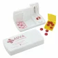Avec 2 boîtes à pilules amovibles dans un compartiment séparé. Conforme à la CCPSA, à la FDA, à la Prop 65. 3 3/4" L x 1 7/8" H x 1 1/2" P