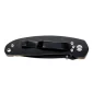 Manche de 4 pouces, lame dentelée en acier inoxydable de 3 pouces. Un couteau noir moderne, avec un insert en bambou dans le manche en acier inoxydable noir. Le côté arrière présente un manche en acier inoxydable argenté avec un clip de poche amovible. Gravure laser sur la lame et/ou le manche. Livré dans une boîte.