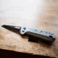 Fermé de 4 1/2 pouces. Lame en acier inoxydable de 3 1/3 pouces. 8 outils : couteau, outil de levier, ouvre-emballage, alêne, décapsuleur, tournevis Phillips/moyen/très petit. Le LMK2 a une lame à bord droit avec un manche gris foncé. Le LMK2X a une lame demi-dentelée avec un manche argenté. Les deux sont équipés d'un clip de poche. Gravure au laser. En boîte. Fabriqué aux États-Unis.