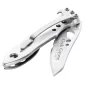 Fermé de 3 1/2 pouces. Lame semi-dentelée de 2 1/2 pouces. Verrouillage arrière. Fabriqué en acier inoxydable 420HC et doté d'une poignée confortable et profilée. Comprend un clip de poche avec ouvre-bouteille intégré. Gravure laser. En boîte. Fabriqué aux États-Unis avec des composants américains et étrangers. Conforme à la proposition 65.