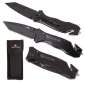 Couteau de poche en acier inoxydable et outil d'urgence pour voiture - Résistant à la rouille et aux taches - Outil multifonction incluant : lame en acier inoxydable noir, brise-vitre d'urgence et coupe-ceinture de sécurité - Revêtement noir brossé et texturé - Fonctionnalité de verrouillage sécurisé - Clip de ceinture utilitaire pour une accessibilité facile.