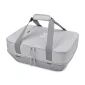 Emballer jusqu'à deux plats à gratin, adaptés à la plupart des plats de 9x13 pouces. Compartiments doublés de papier d'aluminium isolé pour garder les aliments chauds ou froids. Poche supérieure pour ranger de petits objets. Ne pas mettre les aliments directement du four dans le sac. Essuyer les surfaces intérieures et extérieures avant de ranger et entre chaque utilisation. Conforme à la CPSIA, Prop 65. 12,5" de largeur x 7" de hauteur x 17" de longueur.