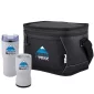 Comprend la bouteille Urban Peak® de 20 oz (SL234PR) et l'isolant 3-en-1 Trail (SL233PR) emballés à l'intérieur du sac isotherme Urban Peak® Reserve 6 Can Cooler (CB165). Le sac isotherme est fabriqué en tarpaulin 500D imperméable et robuste. Les articles de boisson sont fabriqués en acier inoxydable, avec une isolation sous vide à double paroi doublée de cuivre et une finition en poudre. Garantie limitée d'un an. Le modèle SL233PR 3-en-1 et le modèle SL234PR de 20 oz sont brevetés. Dimensions : 7 po de diamètre x 11 po de largeur x 7 po de hauteur.