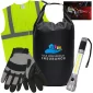 Lumière de sécurité routière de 10" (FL57), gilet en tissu maille de classe 2 (HV03) et paire de gants de mécanicien anti-vibrations (WG06) emballés dans le sac Urban Peak® 10L (BG345). Sac étanche en PVC 190T avec coutures scellées et fermeture enroulable. Lampe de poche en aluminium avec base magnétique ; puissance jusqu'à 120 lumens (avant), 240 lumens (corps) avec 3 modes (lumières avant CREE® XPE, corps blanc COB, corps clignotant rouge COB). Le gilet est de classe 2 ANSI 107, fabriqué en maille de polyester haute visibilité. Visitez le site web. 7,5" de diamètre x 7,5" de largeur x 18" de hauteur.