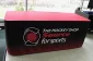 Housse de table personnalisée, sublimée, rectangulaire, non ajustée, pour affichage, présentation de matériel, publicité, fourniture promotionnelle. 72" de largeur.