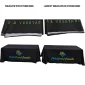 Tissu de qualité supérieure découpé au laser, coupe premium, bords arrondis pour une meilleure fluidité dans les coins. 1 pièce de tissu (au lieu de 2 pièces cousues ensemble). La nappe pour table à quatre côtés crée une impression durable. Rangement simple. Le dos fermé permet de cacher facilement des matériaux sous la table. Cette nappe convient à une table standard de 6 pieds. Conforme aux normes de retardateurs de flamme pour les salles d'exposition. 128" de largeur x 86" de longueur.