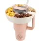 Cette bague à collation est divisée en 3 compartiments, chaque compartiment a une profondeur de 1,77 pouce, le bol à collation a une plus grande capacité qui peut accueillir diverses collations que vous aimez, facilitant ainsi le stockage de plus de nourriture. Ces bols à collation sont spécialement conçus pour la coupe Stanley. Ils s'adaptent parfaitement à votre gobelet Stanley, vous pouvez boire une boisson tout en dégustant de délicieuses collations. Le bol à collation est fabriqué en silicone de qualité alimentaire, sans BPA, sans odeur, réutilisable et résistant aux hautes températures. Collation réutilisable. Conforme à la proposition 65. 7,9" L x 7,9" l x 1,8" H