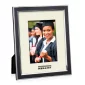 Le métal fini en ébène est bordé d'une garniture argentée brillante sur les côtés pour mettre en valeur votre choix parmi dix couleurs mates différentes. Choisissez la couleur parfaite pour donner à votre événement un aspect personnalisé et élégant. 9,25" L x 11,25" H