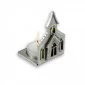 Figurine d'église en 3D qui tient un chandelier. Les figurines en métal sont des mini-répliques sur mesure, plus légères et économiques. Conforme à la Proposition 65.
