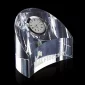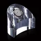 L'un des superbes horloges sur pied en cristal optique sans défaut de la série, l'Ariel de 3 pouces de large, est une pièce élégamment courbée avec une surface supérieure en pente, un visage avant sculpté et un insert d'horloge à quartz métallique fini argenté. 3,0" L.