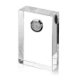 L'un des superbes horloges sur pied en cristal optique sans défaut de la collection, le Baffin de 5 pouces de hauteur, est l'incarnation de la simplicité élégante : un monolithe rectangulaire en cristal pur avec un insert d'horloge à quartz métallique fini argenté. 5,0" H