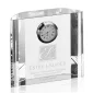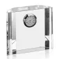 L'un des superbes horloges autonomes en cristal optique sans défaut, le Baffin de 5 pouces de large, a une face avant plate avec des côtés biseautés vers une surface arrière plate et un insert d'horloge à quartz métallique fini argenté. 5,0" L.