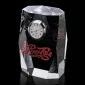 L'un des superbes horloges indépendantes en cristal optique sans défaut, la Sable de 3½" de haut est un monolithe en biseau proéminent avec un insert d'horloge à quartz métallique fini argent. L'éclat inhérent du cristal optique est renforcé par des biseaux sur les quatre bords verticaux, s'amincissant du haut et du bas vers le milieu. 3.5" H