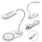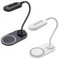 La lampe de bureau réglable Nova dispose d'un chargeur sans fil de 15W avec un abat-jour à col de cygne souple et durable équipé de 20 LED ajustables. La lampe propose 3 modes d'éclairage pour s'adapter à votre environnement : lumière chaude et froide, lumière froide et lumière chaude. Faites pivoter la lampe de bureau à 360 degrés pour éclairer un angle spécifique ou pour un transport facile en voyage. Contrôlez simplement la lampe avec le bouton tactile sur le dessus pour obtenir le mode d'éclairage souhaité, tandis que les patins antidérapants empêchent la lampe de glisser. Livrée avec un câble USB-C et certifiée FCC. Conforme à la norme OU, Prop 65. Dimensions : 3,25" L x 6,25" l x 9" H.