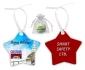 Ornement en métal en forme d'étoile à revêtement en poudre des deux côtés avec une finition pailletée. Personnalisez les deux côtés avec notre processus de sublimation 4cp. Comprend un ruban blanc et un sac en organza argenté. REMARQUE : Article de base disponible avec paillettes métalliques (brillance) ou blanc brillant avec impression UV mate. 3,25" L x 3,25" l