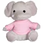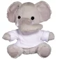 Cet adorable éléphant en peluche gris est disponible dans votre choix parmi 9 couleurs de t-shirt. Nos jouets en peluche présentent le logo uniquement sur le t-shirt. Aucune décoration n'est disponible directement sur les animaux en peluche. Conforme à ASTM, Prop 65. 6" L x 7,5" H x 4,5" P.