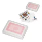 Étui léger avec un design en une seule pièce avec une charnière. 52 cartes à jouer standard + 2 jokers. Les cartes à jouer sont emballées dans un étui de transport réutilisable translucide et parfaites pour une variété de jeux de cartes, soirées poker, casinos et collectes de fonds. Conforme à la proposition 65. 3" L x 4" H x 1" P.
