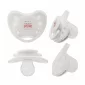 La sucette est fabriquée en Tritan et est dotée d'une tétine en silicone de taille 2 adaptée aux enfants de 6 à 18 mois. Conforme à la CCPSA, à la CPSIA et à la proposition 65. 2 3/8" L x 1 11/16" W x 1 11/16" H