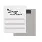 Bloc-notes magnétique de 50 pages. Impression offset en noir à 133 lpi. Forme rectangulaire standard (3,5"x4,25") avec coins carrés, sans bordure. Dimensions : 3,5" de largeur x 4,25" de longueur x 0,275" d'épaisseur.