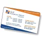 Carte de visite magnétique de 0,020. Finition en vinyle mat blanc sur le dessus et brillant à l'arrière. Sérigraphié en couleurs directes à 76 lpi. Forme rectangulaire, coins arrondis, correspondance de couleur PMS et bordure de débordement autorisée. 2" H x 3,5" L x 0,02" Épaisseur