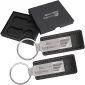 Un super ensemble cadeau de porte-clés pour toutes les occasions ! Deux porte-clés en similicuir présentés dans une boîte cadeau. Boîte cadeau en carton noir avec couvercle ajusté. Personnalisez à la fois les porte-clés et la boîte cadeau. 4,75" de largeur x 4" de longueur x 0,75" de hauteur.