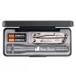 Deux grandes marques emballées ensemble dans une boîte de présentation élégante. La Mini-Maglite 6,50" 2AALED est équipée de la technologie MAG-LED, peut illuminer des objets jusqu'à 156 pieds de distance, est livrée avec 2 piles "AA" et est disponible en noir, bleu, rouge et gris. Le Leatherman Sidekick en acier inoxydable de 4" comprend 14 outils : couteau, couteau dentelé, trois tournevis, règle, scie, pinces à bec effilé et à bec normal à action à ressort, coupe-fil et dénudeur, ouvre-bouteille et ouvre-boîte, lime à bois/métal. Livré avec un clip de poche amovible. Conforme à la Prop 65. 6 1/2" L