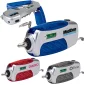 Outil de voyage compact 9-en-1 avec un boîtier métallique argenté élégant et des compartiments à accents de couleur translucides avec une prise ergonomique et un aimant ferme. Comprend un niveau intégré, un ruban à mesurer de 40 pouces, une lampe de poche LED, 6 embouts interchangeables assortis (2 plats, 2 cruciformes, 2 hexagonaux). 1 3/4" H x 4 1/2" L x 3/4" P