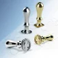 Tampon à glace portatif avec un emblème de forme personnalisée monté sur une poignée standard. Choix de placage en or ou en argent. Logo en relief avec dos lisse ou texturé.