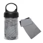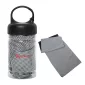 Bouteille PET avec mousqueton contenant une serviette rafraîchissante extrêmement douce à deux couches avec couture en zigzag. Le matériau de la serviette retient l'humidité tout en restant sèche au toucher. La serviette humidifiée aide à abaisser votre température corporelle, ce qui en fait un accessoire idéal pour la salle de sport, les cours de cardio, les promenades, les randonnées et les sports de plein air. Laver en machine avec un cycle délicat et suspendre pour sécher. Conforme à la proposition 65. 12" L x 6,5" H x 6,5" H.