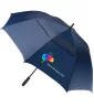 Placez une housse de protection sur vos clients et clients et regardez ces nuages s'éloigner avec ce parapluie personnalisé ! Cet accessoire météorologique en nylon présente un arc de 58", un arbre en fibre de verre, des nervures Duraflex (TM), une ouverture automatique, une technologie ventilée, une poignée pistolet en caoutchouc noir et une pochette assortie qui vous offre un produit confortable et élégant. C'est un excellent produit promotionnel pour votre prochain événement avec des articles promotionnels ou une sortie de golf d'entreprise ! Conforme à la proposition 65. 49" D