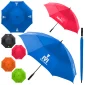 Parapluie de golf double couche de 60". Toile en polyester 210T déperlante et arceau et baleines en fibre de verre légers. Poignée rembourrée avec ouverture automatique pour plus de confort et de facilité. Fermetures à sangle pour le garder compact. Ne soyez pas pris au dépourvu avec un parapluie inversé ! La double couche de la toile et la ventilation créent un passage pour le vent au lieu de déformer votre parapluie. Livré avec une housse assortie pour le rangement. Entretien : laisser ouvert pour sécher, nettoyer avec un chiffon humide. *Comprend une impression sur deux panneaux. 37" L x 60" de diamètre.