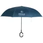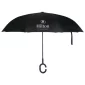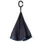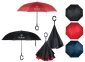 Parapluie inversé à deux couches. Ouverture manuelle. 48" d'arc. Côtes en fibre de verre. Arbre en métal. La poignée en forme de C est idéale pour utiliser les deux mains tout en utilisant le parapluie. Extérieur noir pour garder le parapluie le plus propre possible : révélez vos couleurs lorsque vous l'ouvrez. Le mécanisme inversé facilite la fermeture et l'ouverture en entrant ou en sortant d'un bâtiment ou d'une voiture. Le parapluie se tient debout pour permettre le drainage de l'eau et un temps de séchage rapide. 48" D