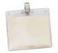 Pochette horizontale vierge en vinyle de 4" x 3" avec pince bulldog.