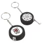 Ce porte-clés en forme de pneu est doté d'un mètre ruban, une étiquette est incluse. (longueur du mètre ruban 3' - 1m). 4" de diamètre x 1 1/2" de hauteur x 5/8" d'épaisseur.