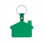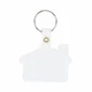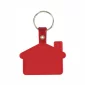 Porte-clés en forme de maison en PVC avec cheminée fabriqué en plastique PVC souple et flexible disponible en blanc, translucide ou couleurs unies avec une languette en plastique rivetée de couleur assortie attachée à un porte-clés rond en métal argenté. 2 1/4" de largeur x 1 1/2" de hauteur.