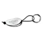 Porte-clés en métal plaqué argent de forme standard avec logo gravé au laser sur un côté. Comprend une attache : mousqueton KCL-28.