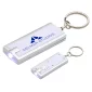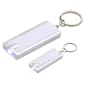 Porte-clés de poche en plastique avec une lampe de poche à LED, s'allume en maintenant le bouton-poussoir enfoncé, anneau fendu pivotant pour les clés. Conforme à la proposition 65. 2,375" L x 0,875" l x 1" H.