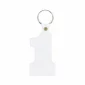 Porte-clés en PVC blanc ou translucide en forme de numéro un (#1) fabriqué en plastique PVC souple, attaché à un anneau fendu en métal argenté rond avec une languette en plastique assortie rivetée. 1 1/2" L x 2 1/2" H