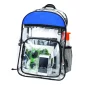 Sac à dos en polyester 600D et PVC transparent - Grand compartiment principal zippé et 2 poches frontales spacieuses zippées - Poche latérale en maille respirante - Piping coloré - Bretelles ajustables rembourrées et boucle de transport - Idéal pour les aéroports, les stades et les activités de plein air. Taille du produit : 12" x 7" x 16". 12,0" L x 16,0" H x 7,0" P.