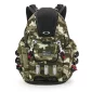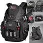 Sac à dos en polyester/nylon 600D. Compartiment de rangement supérieur pour optiques moulées par compression; port pour écouteurs; pochette rembourrée pour ordinateur portable jusqu'à 17"; tirettes de fermeture éclair verrouillables pour sécuriser le compartiment principal. Rabat central; orifices de drainage au bas pour les articles mouillés/salissants; doublure imprimée à l'intérieur. Bretelles rembourrées ajustables avec sangle sternale et étuis pour téléphone. Sangle de taille rembourrée amovible avec poches; panneau arrière moulé par compression avec canaux d'air; fond caoutchouté pour une protection contre l'humidité. 20" H x 14" L x 8" P