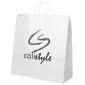 Ces sacs de magasinage en papier kraft blanc populaires sont fonctionnels, abordables et disponibles en tailles petites à moyennes. Ils comprennent des poignées en papier torsadé assorties et une découpe dentelée sur le dessus. Conforme à la CPSIA, à la FDA et à la Prop 65. 18" L x 7" P x 17 3/4" H