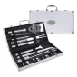 Relevez votre jeu de grillades d'un cran avec cet ensemble de barbecue de 18 pièces prêt à retourner, glacer et enfiler des brochettes à tout moment ! Cet ensemble en acier inoxydable durable comprend une fourchette, un grand couteau, des pinces, une spatule polyvalente, un pinceau de cuisine, 4 brochettes, et 8 supports à maïs. Le boîtier en aluminium garde les choses en ordre entre les sessions de grillades et facilite le transport de vos outils vers un site de camping, une fête de tailgating, et plus encore.